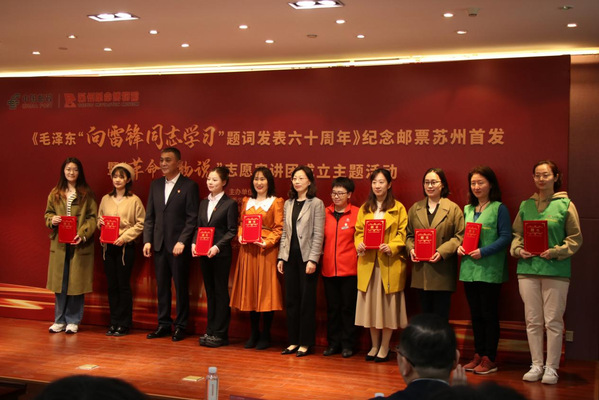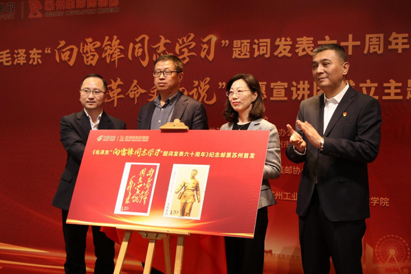 1963年3月5日,毛泽东同志在《人民日报》发表“向雷锋同志学习”的题词,全国掀起学习雷锋先进事迹的热潮。为大力弘扬雷锋精神,深入开展新时代学雷锋活动,水果派解说 与中共苏州市党史办公室、中国邮政集团有限公司苏州市分公司联合举办了《毛泽东“向雷锋同志学习”题词发表六十周年》纪念邮票苏州首发暨“革命文物说”志愿宣讲团成立主题活动。