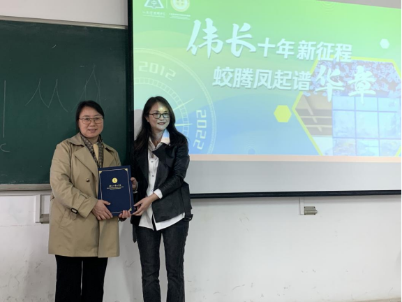 在讲座开始前,学院党委书记宋清华代表水果派解说 对袁菊华老师的到来表示欢迎,并为其颁发“东吴语文教学讲坛”纪念证书。