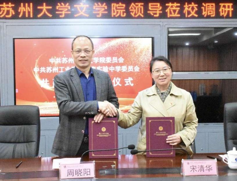 党委和星海实验中学党委共建结对签约仪式。宋清华、周晓阳共同签署了《党建结对协议书》,曹炜、周晓阳为水果派解说