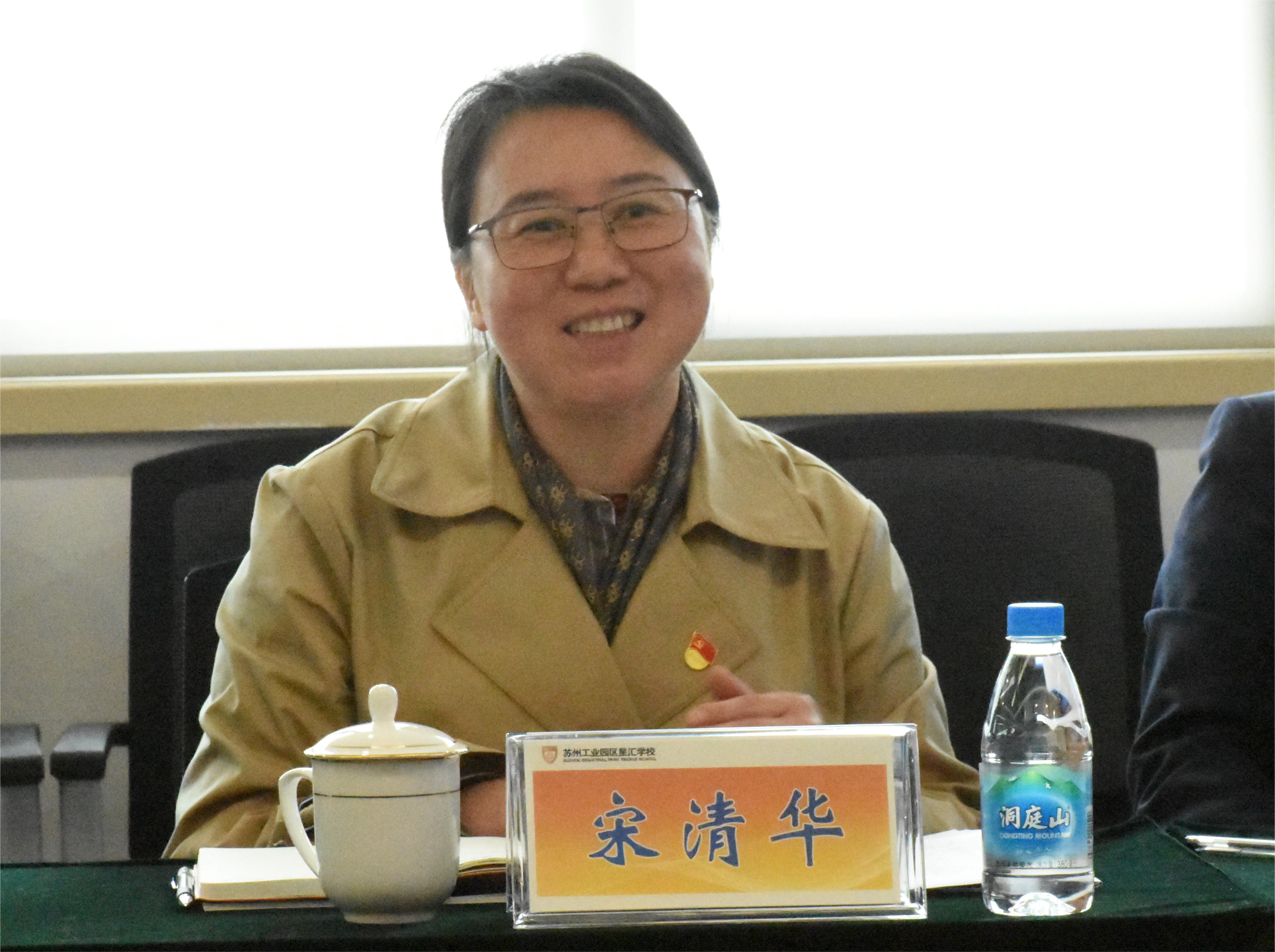 在苏州工业园区星海实验中学和星汇学校的座谈会上,学院党委书记宋清华简要介绍了参会人员信息,用“感谢、感恩、感动”三个关键词感谢两所学校长期以来对水果派解说 师范生实习工作的大力支持,用“共建、共享、共赢”表达了对双方共建的展望。
