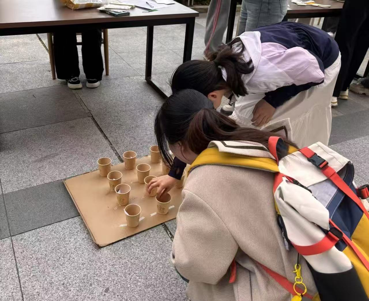 活动的第一个环节是“禁毒投球挑战”游戏,同学们需站在指定位置将乒乓球弹入小纸杯,并读出杯中有关禁毒知识的卡片。有的同学一弹即入,有的同学多次尝试最终成功,整个过程洋溢着同学们的欢声笑语,同学们在愉悦身心的同时学习禁毒知识。