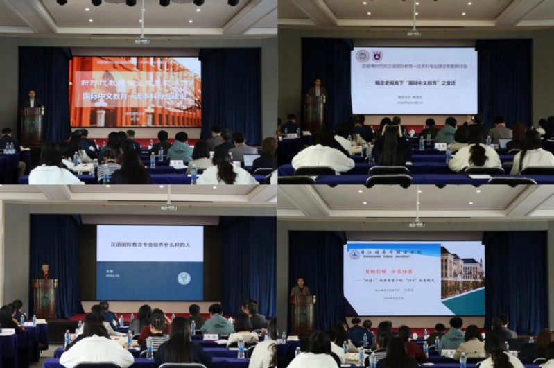 开幕式后,举行了四场大会主题报告,报告专家分别为华东师范大学国际汉语文化学院叶军教授、南京大学海外教育学院曹贤文教授、北京语言大学的张黎教授及浙江越秀外国语学院杨锋教授。他们就后疫情时代的汉语国际教育教师专业发展、“国际中文教育”的概念发展、学生素质与能力要求、专业人才培养模式等主题进行了精彩的学术讲演,参会师生也积极借此机会向专家提问请教,获益匪浅。