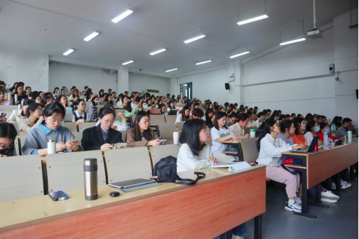 整个过程学生们认真聆听,兴趣盎然。通过程老师的讲解与分享,同学们感受到了任务群设计的统整、有效、促学特点。讲座结束后,同学们意犹未尽,绵绵不断的掌声响彻整间教室。此次讲座获得了圆满成功。