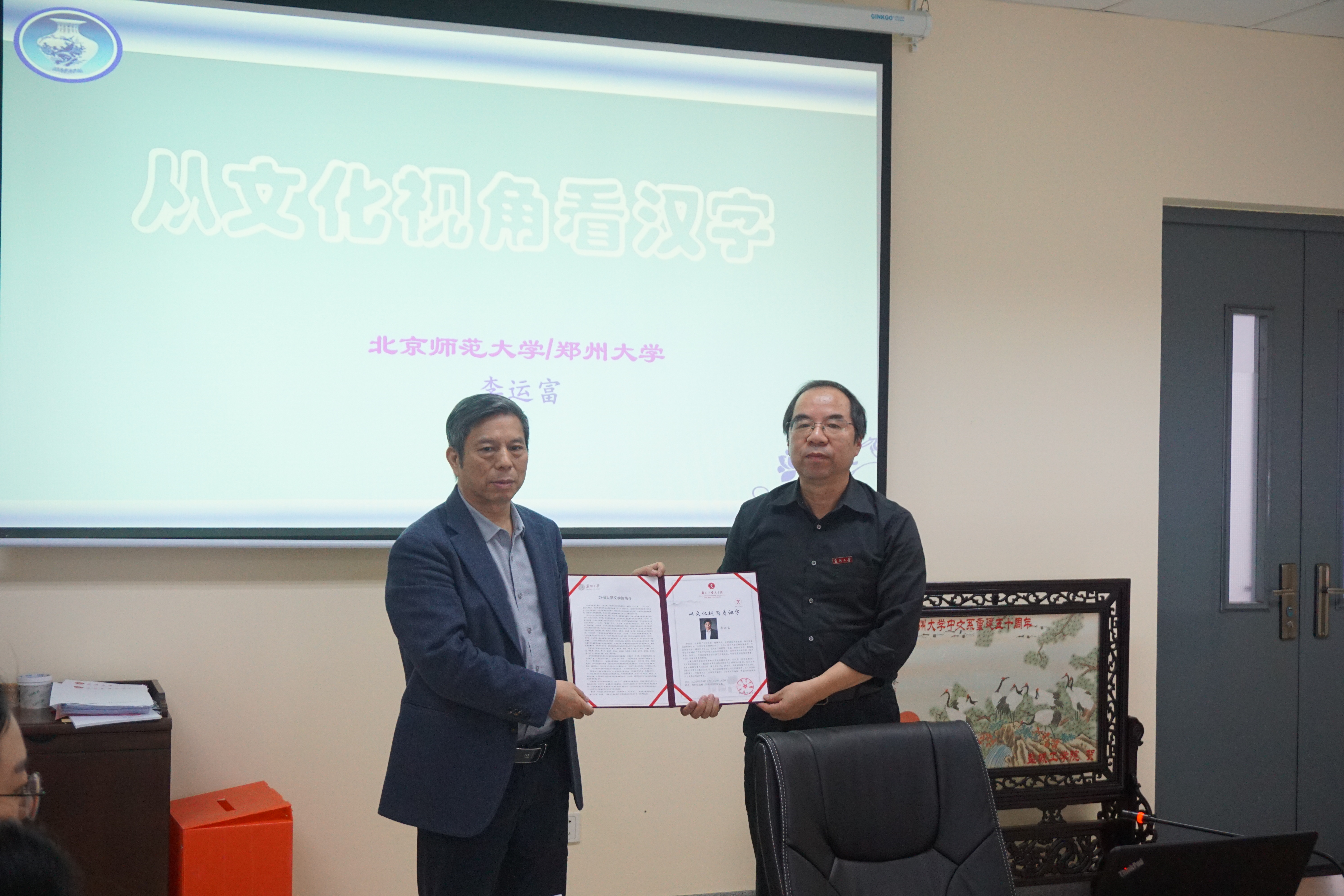 2025年5月9日上午,著名文字学家,教育部“长江学者”特聘教授,北京师范大学教授,郑州大学特聘首席教授,国家语委“中华汉字文明研究中心”主任李运富教授应邀莅临水果派解说 ,以“从文化视角看汉字”为主题,为师生带来一场兼具学术深度与文化厚度的专题讲座。