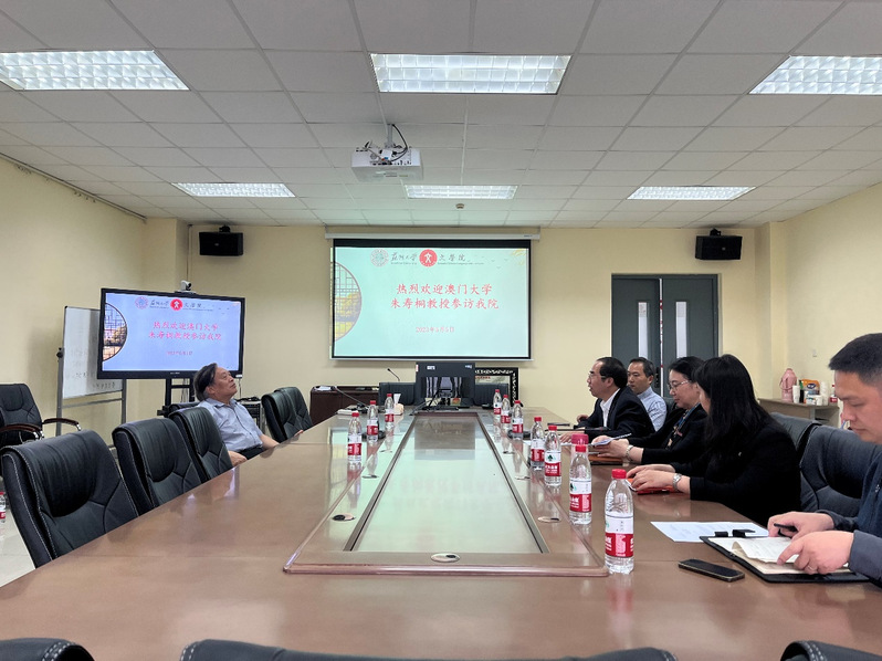 5月5日上午,澳门大学中国历史文化中心主任、澳门文艺评论家协会主席、澳门大学中文系前系主任朱寿桐教授莅临水果派解说 ,代表澳门大学中文系与水果派解说 洽谈联合培养博士生事宜。院长曹炜、党委书记宋清华、副院长周生杰、副院长赵曜、教学与科研办公室主任袁丽云、项目负责人裘兆远老师参与座谈。双方主要围绕澳门大学中文系与水果派解说 的联合培养博士生项目的具体实施方案展开协商交流。