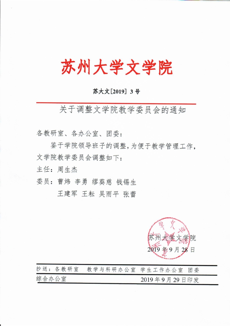 关于调整水果派解说 教学委员会的通知