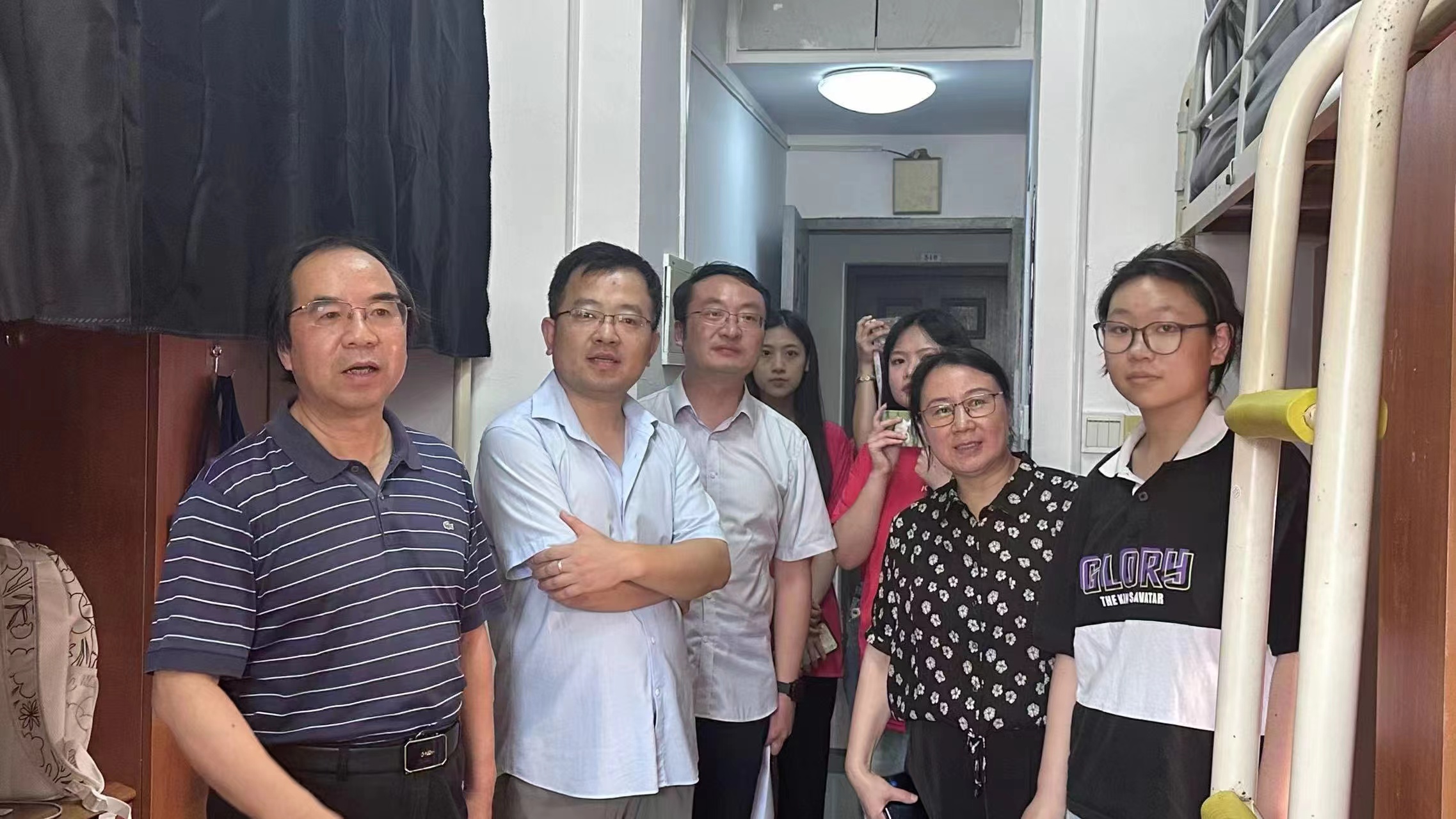 下午,迎新活动渐入尾声。在全体新生报到完毕后,水果派解说 党委副书记阴浩,院长助理陈昌强,学生工作办公室主任纪金平,班主任周品、周瑾锋等领导、老师带领新生班助一起走访了新生宿舍。他们强调了宿舍环境对于学生发展的重要意义,并表示学校不断在为改善同学住宿条件、提供安全舒适的居住环境而做出努力,充分展现出学校、学院对新生住宿的重视与关怀。最后,领导与老师为新生们送上了殷切鼓励与祝福。