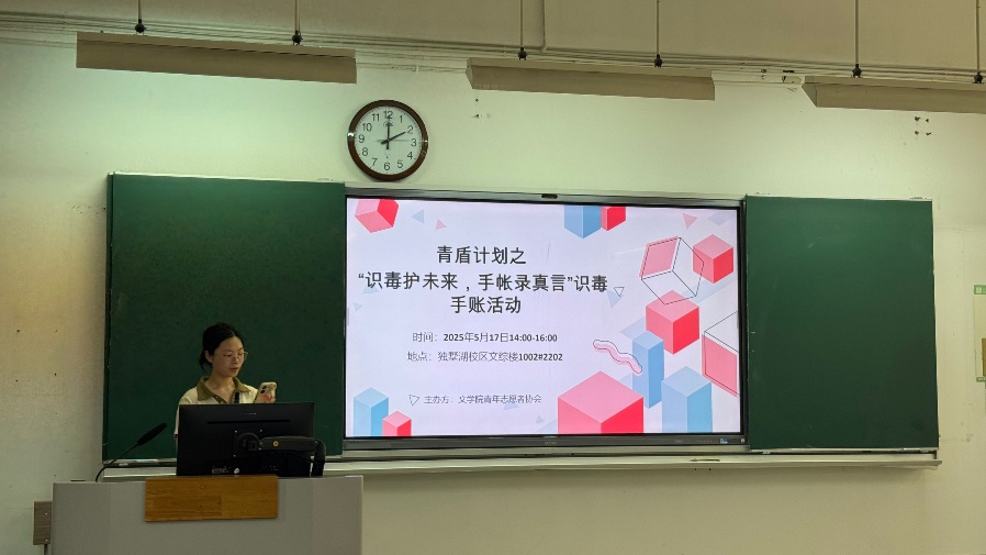 为进一步创新禁毒宣传方式,增强大学生的识毒、拒毒、防毒能力,2025年5月17日,由水果派解说 青年志愿者协会承办的青盾计划之“识毒护未来,手账录真言”识毒手账活动在独墅湖校区文综楼1002栋2202教室顺利开展。