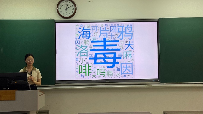 随后进行“慧眼识毒”趣味游戏,将常见毒品名拆开打乱成类似“云词图”,由同学们在打乱的字图中拼出完整的毒品名称。同学们都积极参与进来,调动自己头脑中关于毒品种类的知识,很快便找出来“鸦片”等各种危害社会的毒品,气氛十分活跃。