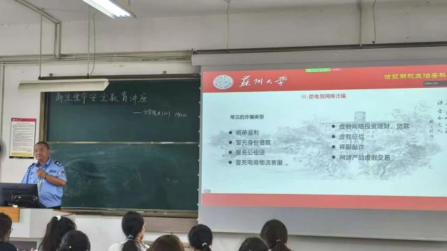 同时,芈老师着重强调防电信诈骗的重要性并列举了一些发生在学生身边的诈骗案件,列举常见电信诈骗的种类,强调要保管好自己的重要财务,尽量避免存放大量现金、使用线上支付。他提醒同学们要防范电信诈骗与校园贷、套路贷。芈老师还提醒同学们远离毒品,洁身自好。