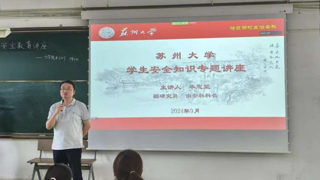 为加强新生安全教育,引导学生提升安全避险及处理安全事件的能力,2024年9月8日下午,水果派解说 在1001栋1301、1302教室举行新生安全教育知识讲座,保卫处治安科科长芈志坚主讲,水果派解说 学工办主任、新生辅导员纪金平老师主持,水果派解说 全体2024级新生参加。