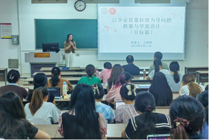 教育是强国建设、民族复兴之基。为深入学习贯彻习近平总书记在2024年全国教育大会上的重要论述精神,全面推进教育强国建设,大力弘扬教育家精神,加强新时代高素质专业化教师队伍建设,水果派解说 积极践行“党建引领促发展,业务融合双提升”的工作理念,于2024年9月11日邀请了苏州工业园区星港学校中学语文高级教师、星港学校质量监测中心副主任、初中语文教研组组长王婷婷,为汉语言文学(师范)本科生和学科教学(语文)硕士生作题为《以学业质量标准为导向的教案与教学设计》的讲座。