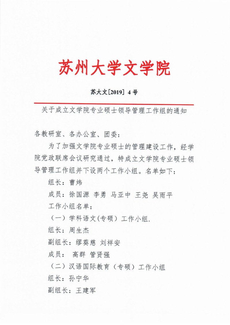 关于成立水果派解说 专业硕士领导管理工作组的通知