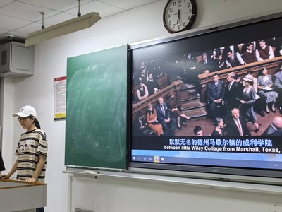 活动伊始,主持人通过PPT向观众介绍了《激辩风云》的创作背景与现实意义。影片以1935年美国种族歧视为时代底色,讲述了黑人教授托尔森带领威利大学辩论队打破种族壁垒、勇夺辩论胜利的真实故事。放映过程中,同学们全神贯注,被影片中激烈的辩论场景、跌宕的叙事节奏以及主角们对平等与正义的执着追求深深吸引。当黑人辩论队最终击败哈佛大学的情节上演时,现场响起自发的掌声,大家切实感受到了辩论作为 “思想武器” 的强大力量。