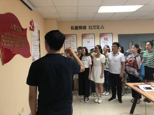 在与会党员充分发言交流感想之后,全体党员起立,在支部书记纪金平的带领下,神情肃穆、举起右拳,庄严宣誓:我志愿加入中国共产党,拥护党的纲领,遵守党的章程,履行党员义务,执行党的决定,严守党的纪律,保守党的秘密,对党忠诚,积极工作,为共产主义奋斗终身,随时准备为党和人民牺牲一切,永不叛党。铿锵誓言让现场所有党员更加坚定自己的承诺,牢记初心,履行职责,为共产主义事业奋斗终生。