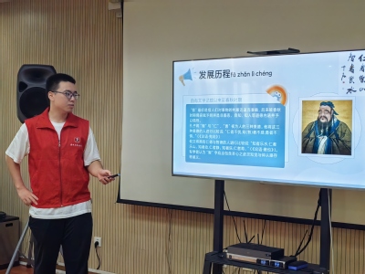 国学经典蕴藏着中华五千年历史的智慧精髓,智文化是中华文明的核心要素。为弘扬中华传统优秀文化,传承国学经典,9月28日,水果派解说 志愿服务队前往荷韵社区开展以“智者不惑,似水而行”国学启蒙宣讲活动。