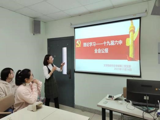 11月14日上午,为了深入学习领会党的十九届六中全会精神。水果派解说 研究生第二党支部在文综楼5103举行专题教育活动。