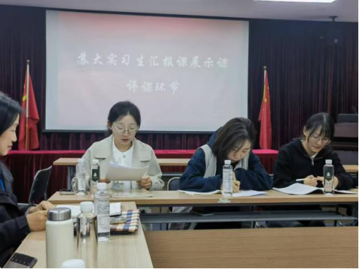 在总结环节,身兼水果派解说 学科教学语文校外硕士生导师的张兰芳老师对苏大水果派解说 领导和老师的到来再次表示热烈欢迎,并对苏大水果派解说 实习生们展现出的蓬勃朝气与认真态度给予了赞扬。周生杰副院长在发言中特别感谢了苏州中学为苏大水果派解说 实习生们提供的宝贵机会,让学生们在实践中不断成长。