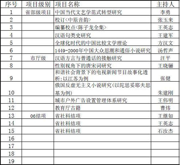 注:(1)本年度新立项的项目、本年度有经费到位的项目、通过省级(含省级)以上鉴定的项目及通过验收的国家级项目均在此表中填写。 (2)纵向项目和横向项目请相对集中填写,并在备注栏中注明。