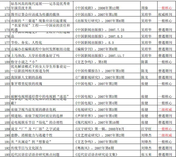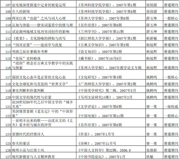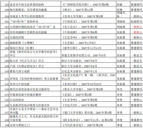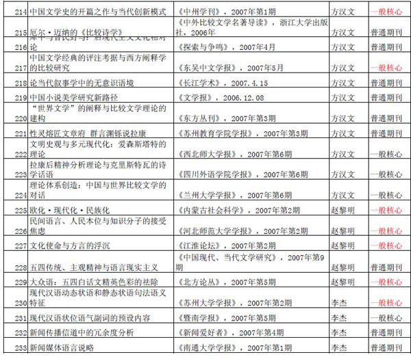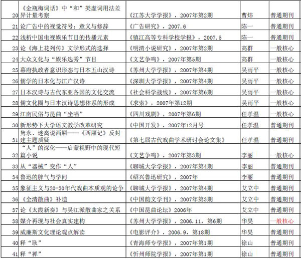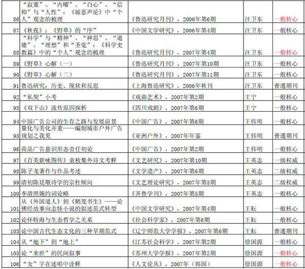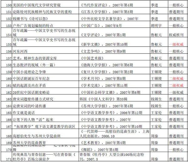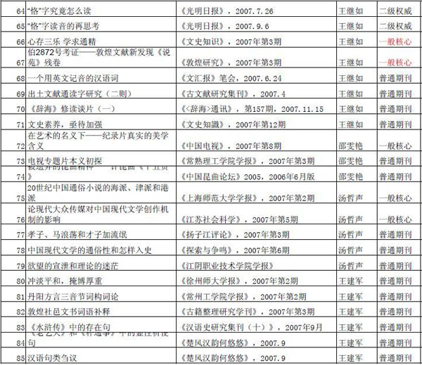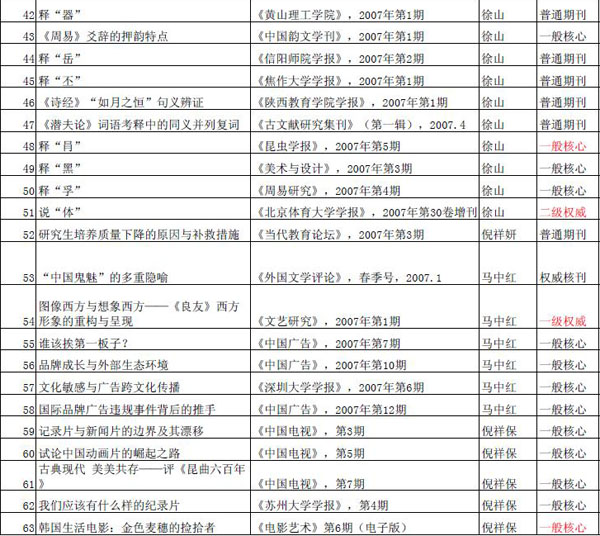 注:1、“期刊类别”一栏中请填写“权威核刊”、“核心期刊期刊”、“普通期刊”; 2、由于《水果派解说 人文社会科学类核心期刊目录(2007.7)》已于2007年7月9日公布,经研究,本文件公布之日前的成果仍按2002版核心期刊目录统计,7月9日之后的按新版统计; 3、“成果来源”一栏请文科教师填写成果受资助项目的来源或“非立项项目”。