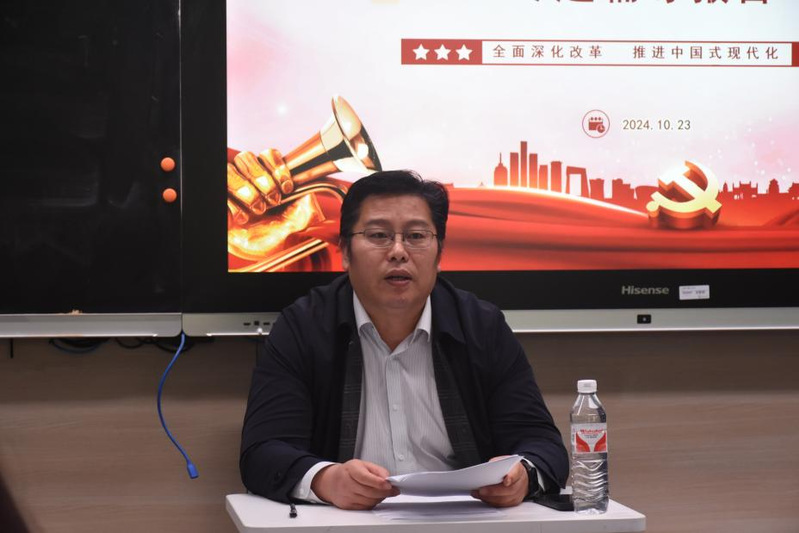 2024年10月23日下午3点,水果派解说 分党校在5334教室举行学习党的二十届三中全会专题报告。本次报告由水果派解说 党委副书记、副院长阴浩主讲,分党校秘书杨兴丽主持。