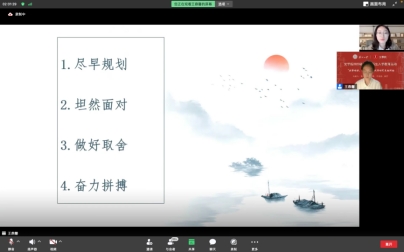 最后,黄润琪引用北京大学中文系刘勇强老师在毕业典礼上“为天下用或自得其乐”的发言,围绕“学历贬值”“情绪价值”“自我实现”“职业理想”“物质追求”“感情期待”几个关键词,与同学们交流职业生涯规划,并祝愿大家学业顺利,未来可期。