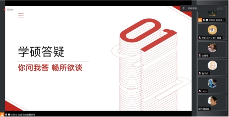 最后,在分专业进行的答疑环节,水果派解说 研究生会文体部负责人徐晓悦与钱思雨、刘音孜一同为2023级研究生答疑解惑,并在沟通过程中分享了自己过去一年的学习生活和感受,帮助大家逐渐完成新生入学适应。