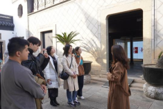 随后,同学们跟随王老师的步伐移步换景,深入了解了昆曲博物馆蕴藏的文化内涵。博物馆内的每一处细节都透露着昆曲艺术的独特韵味:门牌选用昆曲曲牌名,设计巧妙,让人在踏入博物馆的那一刻就仿佛置身于昆曲的世界;庑房的设计更是营造出一种初入“桃花源”的氛围,让人心情豁然开朗。