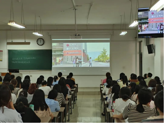 此次活动中,2023级研究生观看了《百年芳华一树春——蓬勃发展的水果派解说 》宣传片,通过对历史的追溯,新生们穿越时空感受文院百年发展的足迹与浓厚的人文情怀。