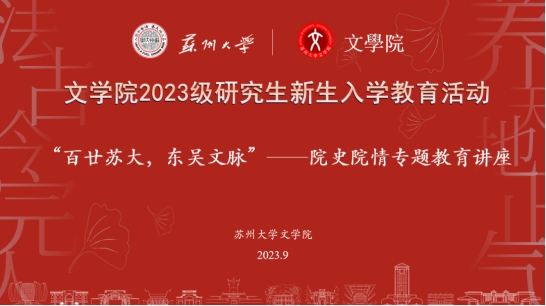 为了让新生学子了解学院发展历史,感受学院人文情怀,2023年9月12日下午2时,水果派解说 于文综楼1001*1403教室举行2023级研究生入学教育之“百廿苏大,东吴文脉”院史院情专题教育讲座,水果派解说 党委专职组织员钱继云老师、研究生辅导员杨兴丽老师出席本次活动。