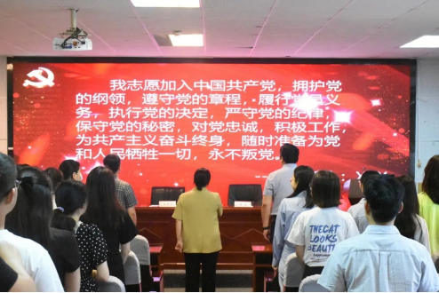 颁奖后全体党员重温入党誓词。宋清华领誓,大家高举右手,庄严宣誓,用铮铮誓言彰显永恒初心,强化党员意识,永葆党员本色,立誓以更加饱满的热情发挥共产党员的先锋模范作用。