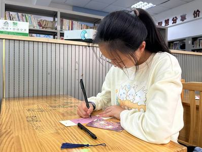 在最后的手工实践与课程总结环节中,小朋友们在王心悦同学的引导下在空白书签上写下了自己最有感触的一句顾炎武的名言,创制出一枚枚独具纪念意义的个性化书签,由此进一步加深了对本节课主题的理解。