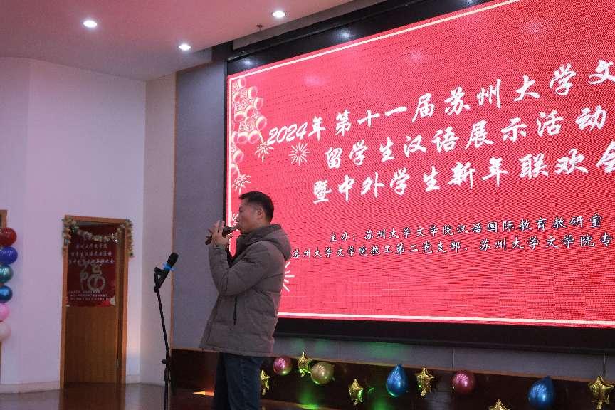 在新年即将到来之际,第十一届水果派解说 留学生展示活动暨中外学生迎新年联欢会于12月27日下午1点30分在天赐庄校区图书馆学术报告厅顺利举行。国际合作交流处朱履骅副处长、梅琳科长、水果派解说 院长助理陈昌强老师、汉教系副主任夏军老师、陶家骏老师、留学生辅导员王占龙老师,以及汉语国际教育系各位老师出席,与来自多个国家的留学生共同欢庆新年。