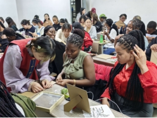 将近四十分钟的手工制作让大家在一缠一绕、一竹一蔑中收获了成就感和真挚的友谊,同时也感受到来自不同国家留学生们的热情。活动最后,刘蓓同学以拍八虚为例,向大家展示了艾草锤的具体功用,制作竹编画的参与者也纷纷用镜头记录自己手中意义非凡的工艺品。