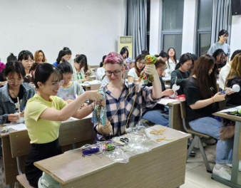 在手工制作过程中,大家或两两结对或三五一组,来自不同国家、说不同语言的参与者在此时被手中的绒线和竹编连结到了一起,大家相互协作、共同探索制作步骤。淡淡的艾草香和同学们的谈笑声交织在一起,活动现场其乐融融。参与此次活动的留学生们纷纷表示这次手工制作活动的开展加深了大家对中国传统节日的了解且能够体验传统手工制作的乐趣。来自俄罗斯的留学生吉斯威表示,这次活动的举办让他能有机会了解中国传统节日并亲自体验艾草锤的制作过程,他希望以后能够参加更多这样有趣的活动;越南的留学生丁青青草表示参与此次活动有很大收获,她不仅充分感受到重阳节的文化氛围,还进一步了解了重阳节的来源和意义,她还表示此次活动中令她印象深刻的是了解了人体的八虚,并希望能够制作一些艾草锤送给家人。