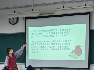 活动伊始,两位主讲人从重阳节的节日名称、文化内涵以及传统习俗三方面作了简单介绍,向各位参与者展示了重阳节登高、赏菊、插茱萸的传统习俗,带大家共同了解重阳节敬老、祈福的文化内涵。讲解完相关知识后,现场进行了关于重阳节的中国诗词和传统文化知识抢答,其中博士留学生叶慧同学以其对中国文化的广泛了解获得了留学生组最佳抢答者,2023级汉硕班新生苏丹获得中国学生组最佳抢答者。随后两位主讲人为他们颁发纪念品,鼓励大家继续深入了解中华传统节日,传承中华优秀传统文化。