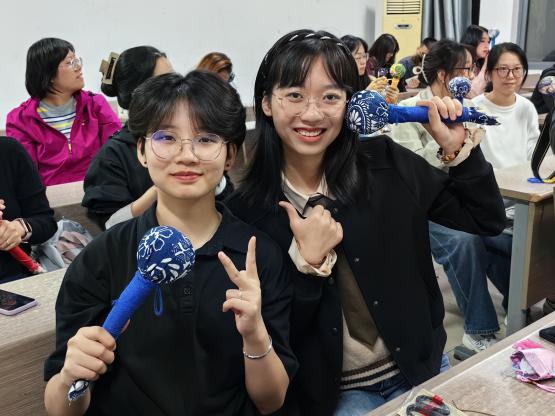 在手工制作过程中,大家或两两结对或三五一组,来自不同国家、说不同语言的参与者在此时被手中的绒线和竹编连结到了一起,大家相互协作、共同探索制作步骤。淡淡的艾草香和同学们的谈笑声交织在一起,活动现场其乐融融。来自俄罗斯的留学生吉思威表示,这次活动的举办让她能有机会了解中国传统节日并亲自体验艾草锤的制作过程,她希望以后能够参加更多这样有趣的活动;越南的留学生丁青青草表示参与此次活动有很大收获,她不仅充分感受到重阳节的文化氛围,还进一步了解了重阳节的来源和意义,她还表示此次活动中令她印象深刻的是了解了人体的八虚,并希望能够制作一些艾草锤送给家人。来自韩国的留学生金泰勋认为,此次活动给他留下了美好的回忆,他不仅能够与大家一起制作手工,还收获了友谊。来自尼日利亚的留学生和冉表示,这个节日非常好,他喜欢这样的活动方式,它能让他切身体验到中国传统节日的文化意义。来自越南的留学生苏竹篱认为,这个节日让她了解到重阳节是中国的敬老节,节日当天有赏菊的习俗,现场的手工制作活动让她知道艾草锤还可以做成按摩工具,她非常期待以后能体验更多的中国文化。