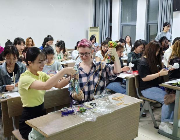 金秋送爽,今又重阳。2023年10月23日晚,水果派解说 联合水果派解说 传统文化工作坊在水果派解说 独墅湖校区文科综合楼1004-4204、4205教室举办了“巧手度重阳,情思贯中西”——传统文化手工活动。水果派解说 三十余名留学生参与了此次活动,以制作艾草锤和竹编画两项手工工艺品为主要内容,为留学生们了解中华优秀传统文化、促进中西文化友好交流提供“沉浸式”体验平台。活动由研究生志愿者刘蓓和陈鸿宇担任主讲人。