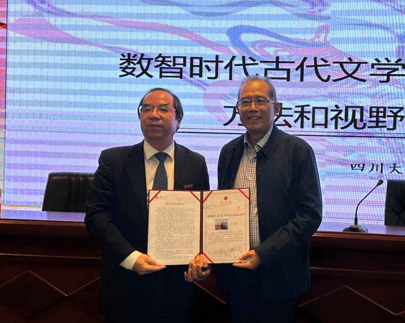 2023年10月21日下午,在水果派解说 文科综合楼1005-5339会议室,四川大学文科讲席教授、中南民族大学二级教授、中国宋代文学学会会长、中国词学研究会会长、中国李清照辛弃疾学会会长、中国韵文学会副会长王兆鹏教授,以“数智时代古代文学研究的方法和视野”为题,为水果派解说 师生带来了一场精彩的学术讲座。此次讲座为“仲联学术讲坛”系列讲座之一,曹炜院长代表水果派解说 致辞,并为王兆鹏教授颁发了纪念证书,曾维刚教授主持了本次活动。