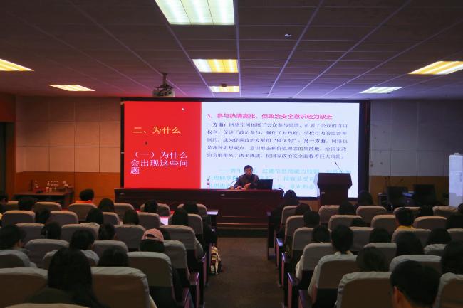 夏凤军还结合相关舆情案例进行剖析介绍,提醒大家理性适度上网,避免网络依赖;增强网络安全意识,提高信息甄别能力;强化法律意识,规范网络言论。同时,他也对同学们寄予五点希望:一是聚焦主责主业,努力成就更好自我;二是严守法律法规,持续提升自身修养;三是秉持相互成就理念,自觉维护学校形象;四是不断提升思想格局,争做又红又专的新青年;五是主动担当作为,带头争做合格网民。