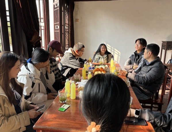 随后,同学们在茶室共赏风光,品茶谈心,由裘老师为初到苏州求学的同学们答疑解惑。