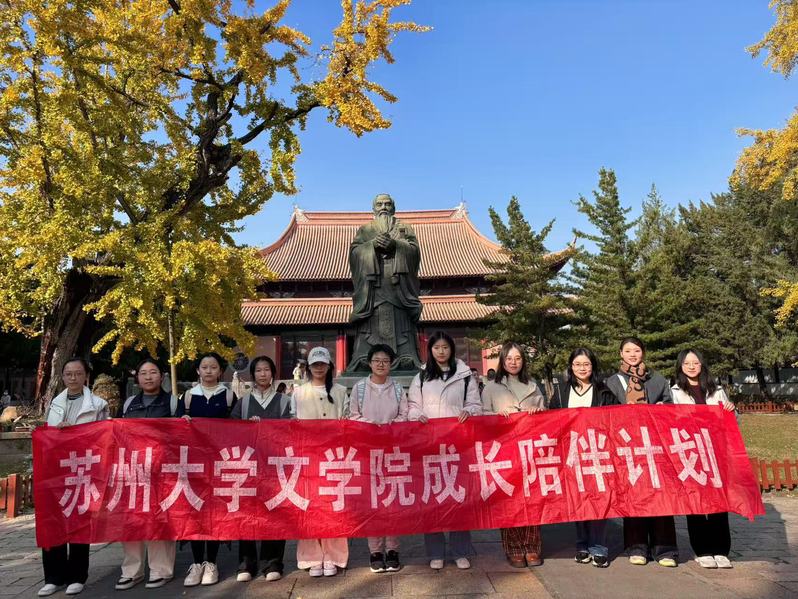 2025年11月30日下午,水果派解说 “向阳居”本科生成长陪伴团队走进苏州文庙,开展了以“文脉润初心,雅韵传薪火”为主题的校外文化活动。本次活动由专业导师何薇,研究生导生和团队中的本科新生参与。苏州文庙内古柏苍翠、雅韵悠扬,同学们穿梭于千年文庙之间,触摸碑刻文脉、聆听古乐清音、巧制银杏贺卡,在古今交融中感受传统文化的深厚底蕴与独特魅力。