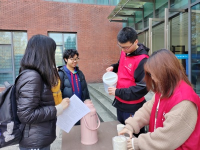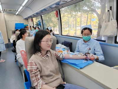 活动当天天气寒冷,但丝毫没有影响同学们奉献爱心的热情。献血活动正式开始之前,志愿者们便早早地来到公体楼,紧锣密鼓地做好前期准备。中午11点,前来献血的学生们慢慢排起长队,在志愿者和血站工作人员的引导下井井有条地进行登记、体检、采血化验。医务人员认真核对献血者的身份信息,询问其健康状况,并指引采血化验达标的同学依次前往献血车献血。