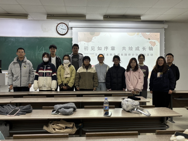 2025年12月3日下午,水果派解说 “语翼传薪”成长陪伴团队在吕金刚导师的带领下,于文综楼1003-3101成功举办了“初见如序章,共绘成长轴”主题见面会。本次活动由专业导师吕金刚、研究生导生及全体25级本科新生共同参与,现场氛围温馨活泼,互动热烈,为新生开启大学生活提供了温暖的引导与陪伴。
