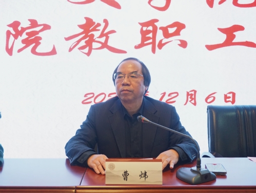 12月6日下午,学院全体教职工大会在文综楼1005幢5339报告厅顺利举行。会议由院党委书记宋清华主持,学院党政班子成员和全体教职工参加了会议。