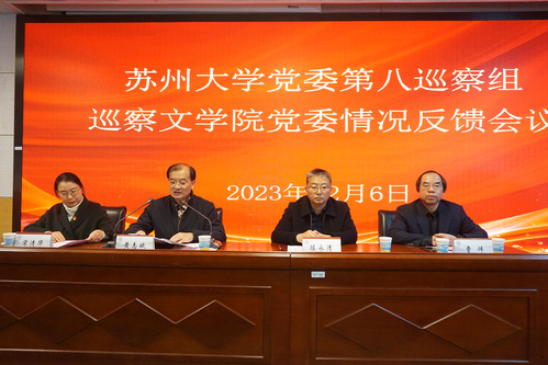 12月6日下午,校党委第八巡察组巡察水果派解说 党委情况反馈会议在独墅湖校区1005幢5339会议室举行,校党委常委、统战部部长、校党委第八巡察组组长黄志斌,校党委巡察工作领导小组成员、财务处处长陈永清,校党委第八巡察组全体成员,水果派解说 党政班子成员、党委委员和全体教职工参加了会议。会议由水果派解说 党委书记宋清华主持。