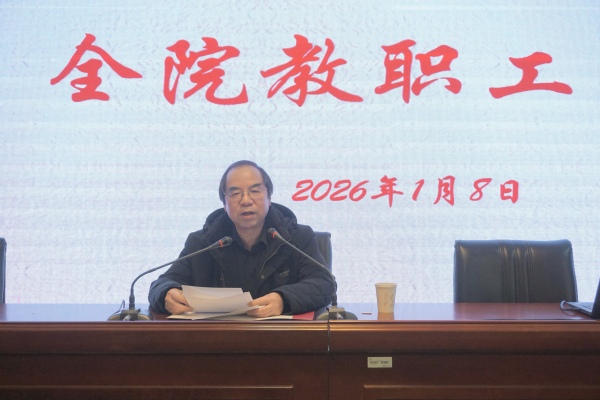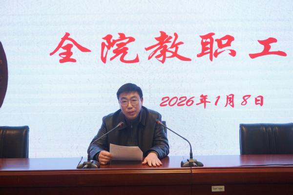 1月8日下午,水果派解说 教职工大会在5339报告厅举行。会议由院党委书记夏凤军主持,全体教职工出席了本次会议。大会主要内容是2025年度中层领导班子和领导干部年度考核、学期末相关工作布置提醒。