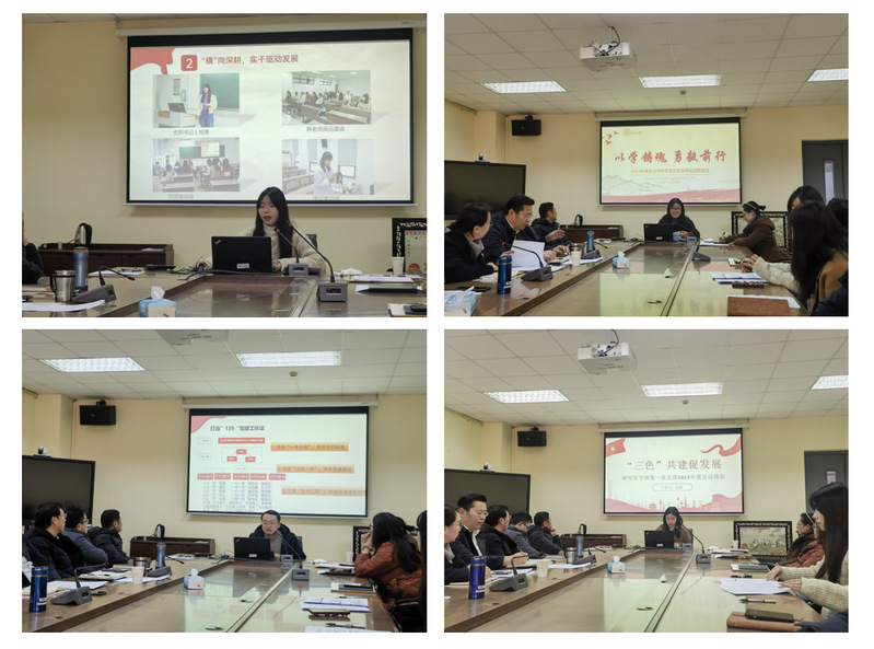 各支部书记依次从支部建设、党员教育与管理、特色活动、不足之处及未来工作计划等方面进行了述职汇报。其中,水果派解说 本科生党支部作为院级标杆党支部,创新性地打造了“135”党建工作法,围绕以习近平新时代中国特色社会主义思想凝心铸魂这一条主线,筑牢信仰根基;党建、团建、班建三位一体,夯实党建基础;通过打造以文培基、以文强党、以文载道、以文化人、以文互鉴五大工程,助推党建提质增效。研究生学硕第一党支部作为牵头党支部,组织策划了“强国复兴有我——我是党史记录人”苏州党史学习教育基地数字展进高校活动,党员同志们通过线下走访、线上调研,在历史长河中重温光辉岁月,汲取精神养分,将学习成果通过创作文艺作品、拍摄寻访视频的方式展现。研究生专硕第一,第二党支部以苏州丰厚的文化历史底蕴为依托,合作开展了“赏传统文化之美,走文化自信之路”系列主题党日活动,开展了“循迹向前以筑文心,雏凤传声以践文行”平江路主题党日活动、“以针作画·皆绣风雅”苏绣艺术体验之旅等。教工党支部以书面方式进行述职,各支部本年度都能在院党委的正确领导下,深入学习贯彻落实党的二十大精神,出色地完成了各项工作。