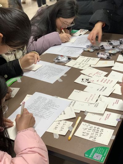 制作完成后,饺子和汤圆被送入后厨。同学们也没闲着:投壶游戏、赠送明信片,玩得不亦乐乎。经过十几分钟的烹煮,式样各异的面点新鲜出炉。大家兴致盎然地互相品评着对方的劳动成果,享受着美味的饺子和汤圆,现场充满了欢声笑语。