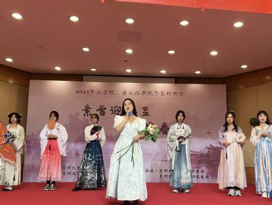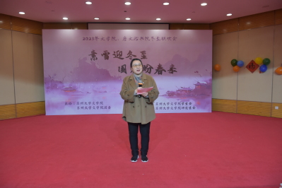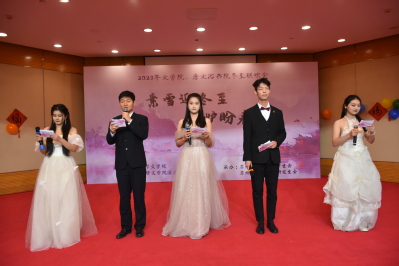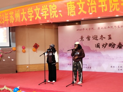 12月21日14:00,“素雪迎冬至,围炉盼春来”——2023年水果派解说 、唐文治书院冬至联欢会在炳麟图书馆学术报告厅如期举行。本次活动由水果派解说 团委主办,水果派解说 学生会、研究生会承办。出席本次联欢会的有水果派解说 党委书记宋清华、水果派解说 党委副书记阴浩、学生办公室主任纪金平、20级21级辅导员陆亚桢、22级23级辅导员丁小珊、研究生辅导员孙薇、研究生辅导员杨兴丽、留学生辅导员王占龙。